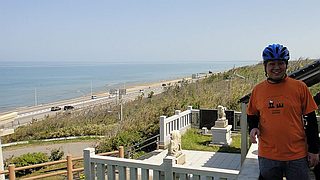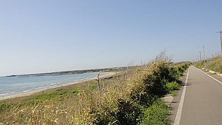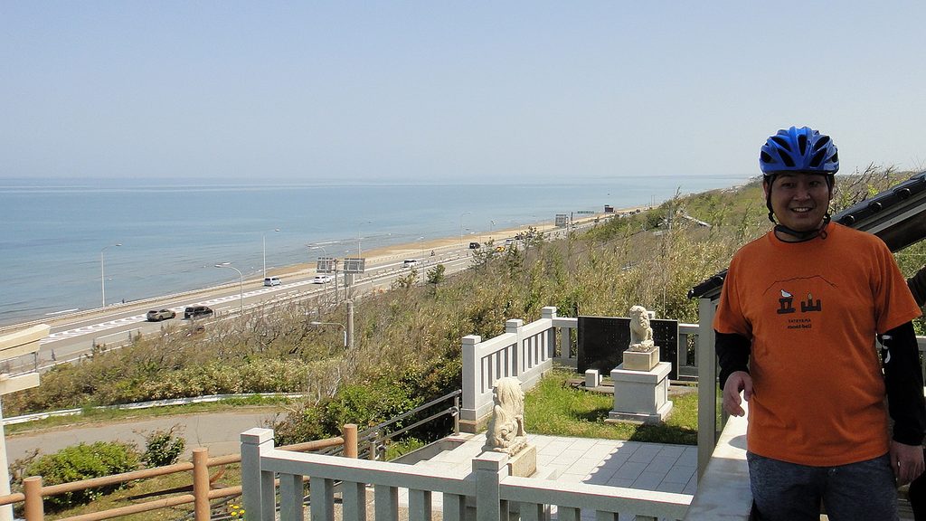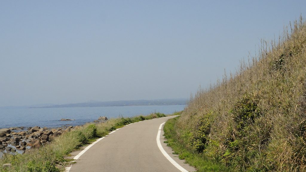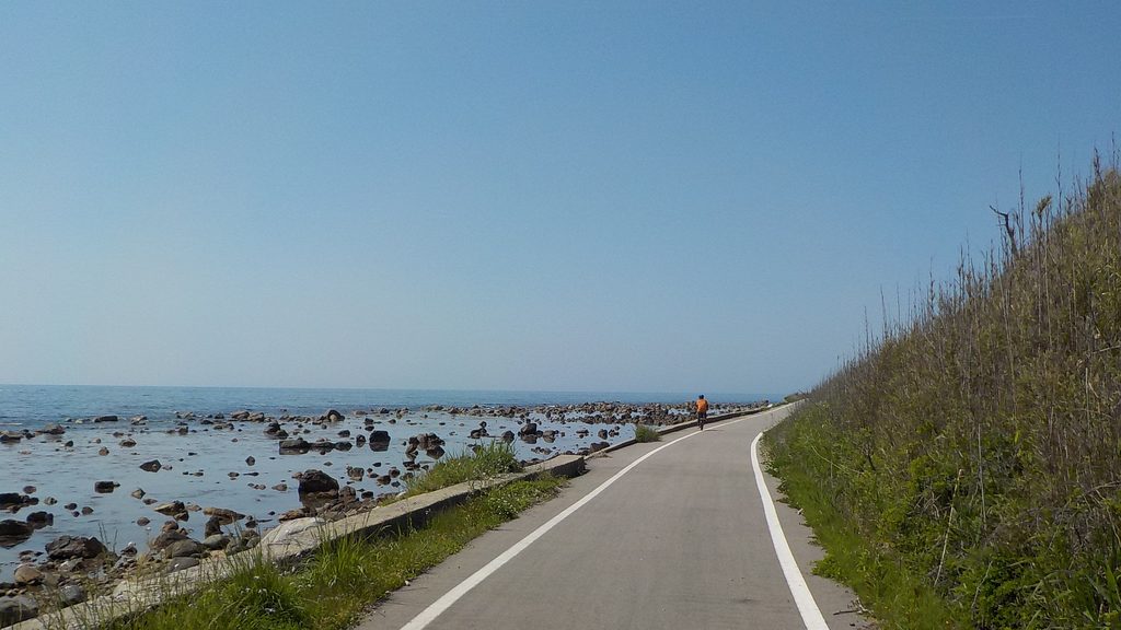 海の本当に真横を走る道、弱い追い風も最高