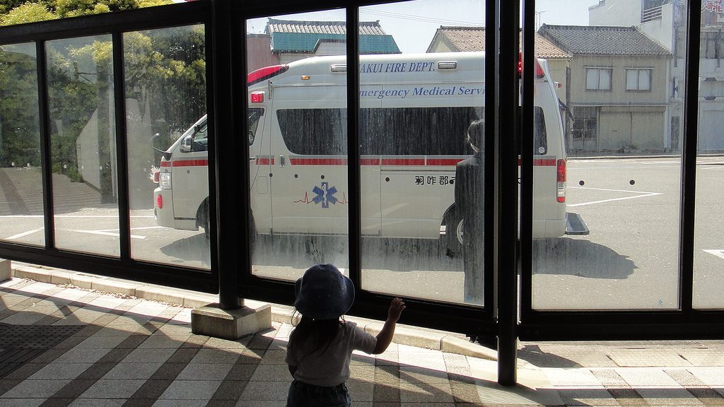 急に具合悪くなった方、救急車呼ぶことに