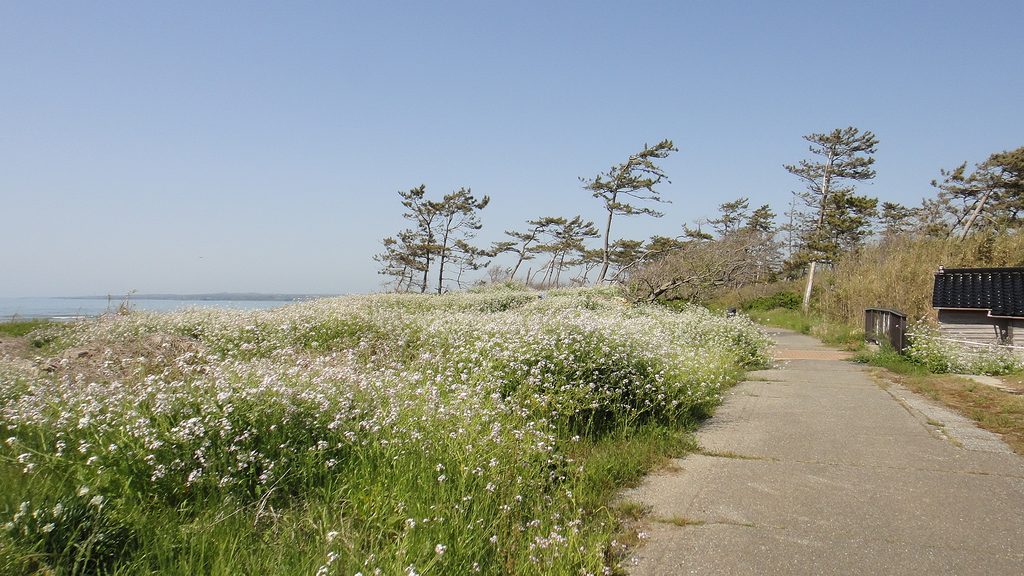 残り約8km、ハマダイコン満開
