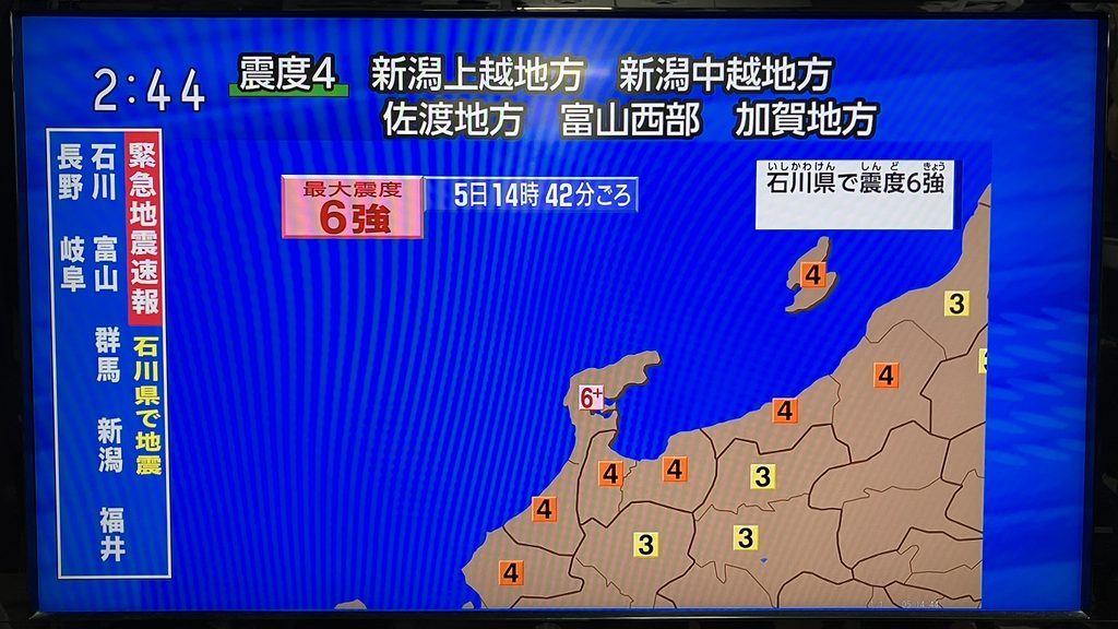 ■そして翌日午後2時42分、珠洲で震度6強の地震、富山も震度4だった
