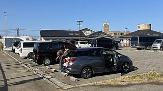 砂州?の上に車が並んでいる、砂の上を走れる様だ