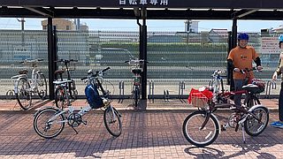 あらかじめ駐輪したDAHONで出発