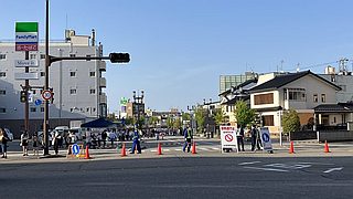 御祓川沿いの川渕通りは車両通行止め