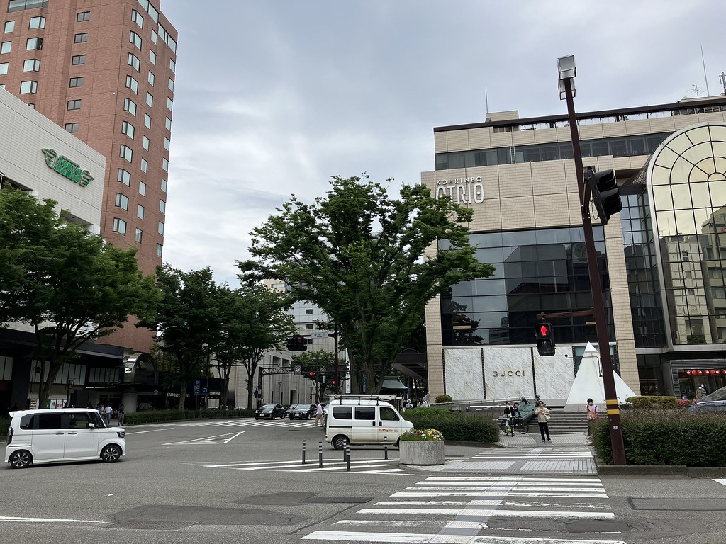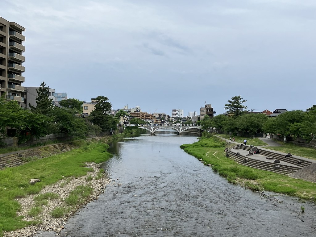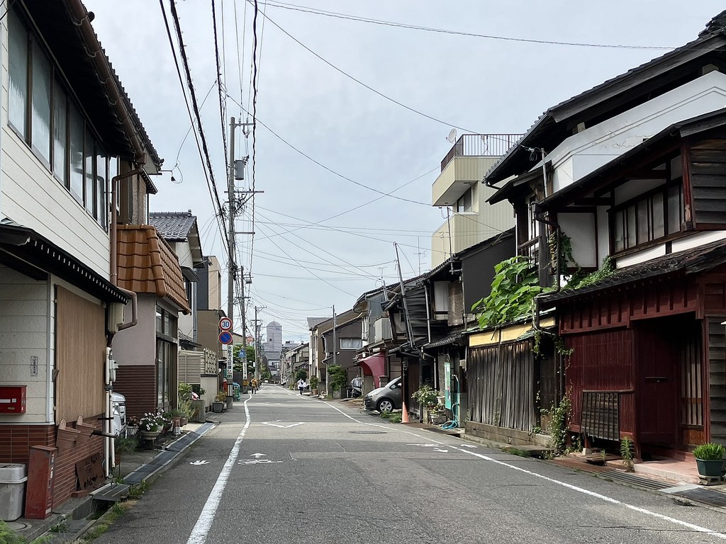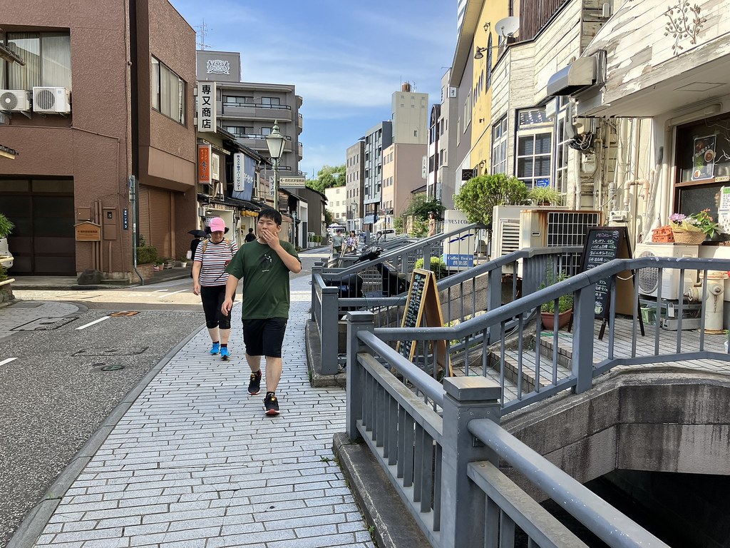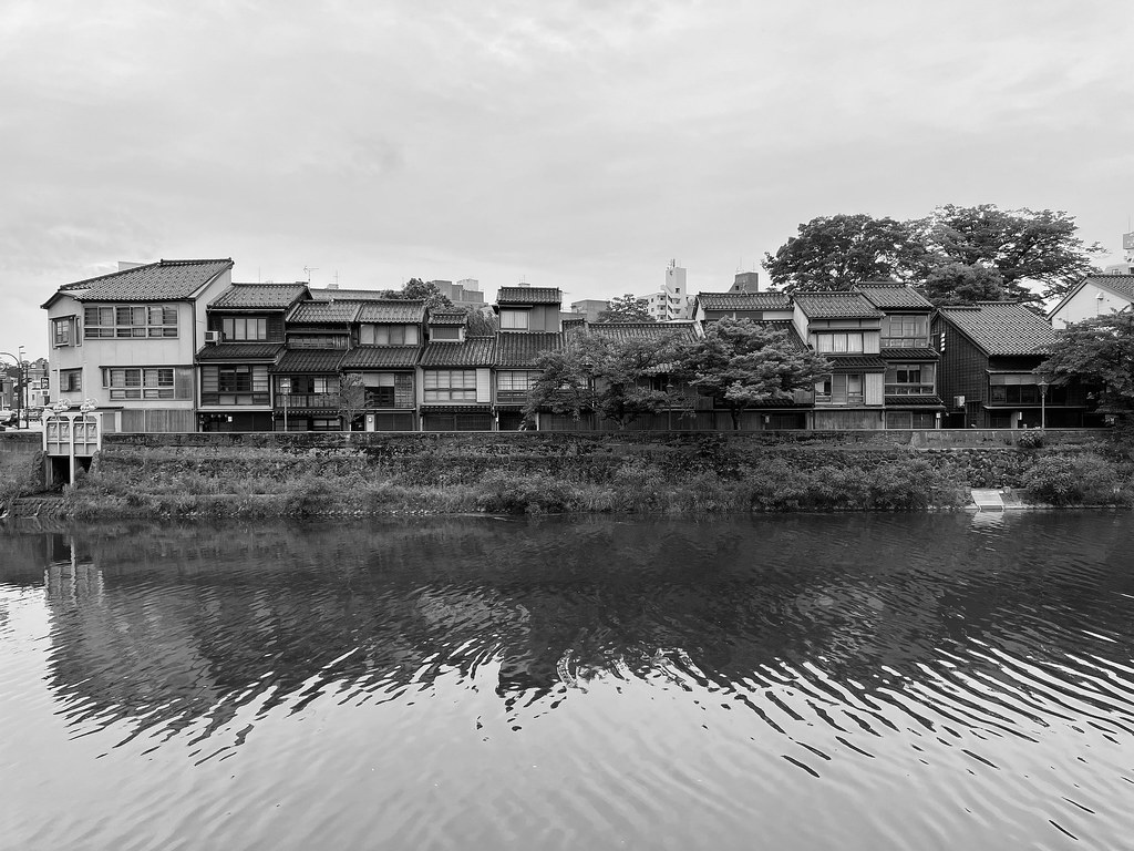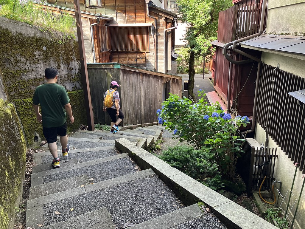 前回5月(5月28日)から2週後(6月11日)に再び金沢へ…パン屋のハシゴいつもの2軒目ジョアンで買い食いの昼食後、再び金沢市街をウォーキング、今回は金沢城公園を外しつつベタな観光スポットを「歩き易い」裏道で結んで巡ってみた。前回同様にアピタを起点で出発、にし茶屋街〜寺町は妙光寺・大円寺〜W坂こと石伐坂・桜橋〜新竪町〜北電・MROへ続く裏道〜旧県立図書館横から美術の小径で国立工芸館〜護国神社前から八坂を下り〜材木町の住宅街を抜け〜浅野川梅の橋〜ひがし茶屋街を小道で横断〜喧噪避けて宮田鈴庵の通りから小橋〜彦三から昔はアーケードだった横安江商店街〜エムザ裏スタジオ通り〜近江町市場十間町口から仙石通まで続く裏道〜北國新聞裏の鞍月用水東側の裏道〜眼鏡のMitoの階段から鞍月用水渡ってせせらぎ通り〜旧シネマ街〜新天地から犀川に続く片町の裏通り〜犀川縁から新橋渡って戻った。およそ10km、今回はなかなか満足できたルート取りだった。