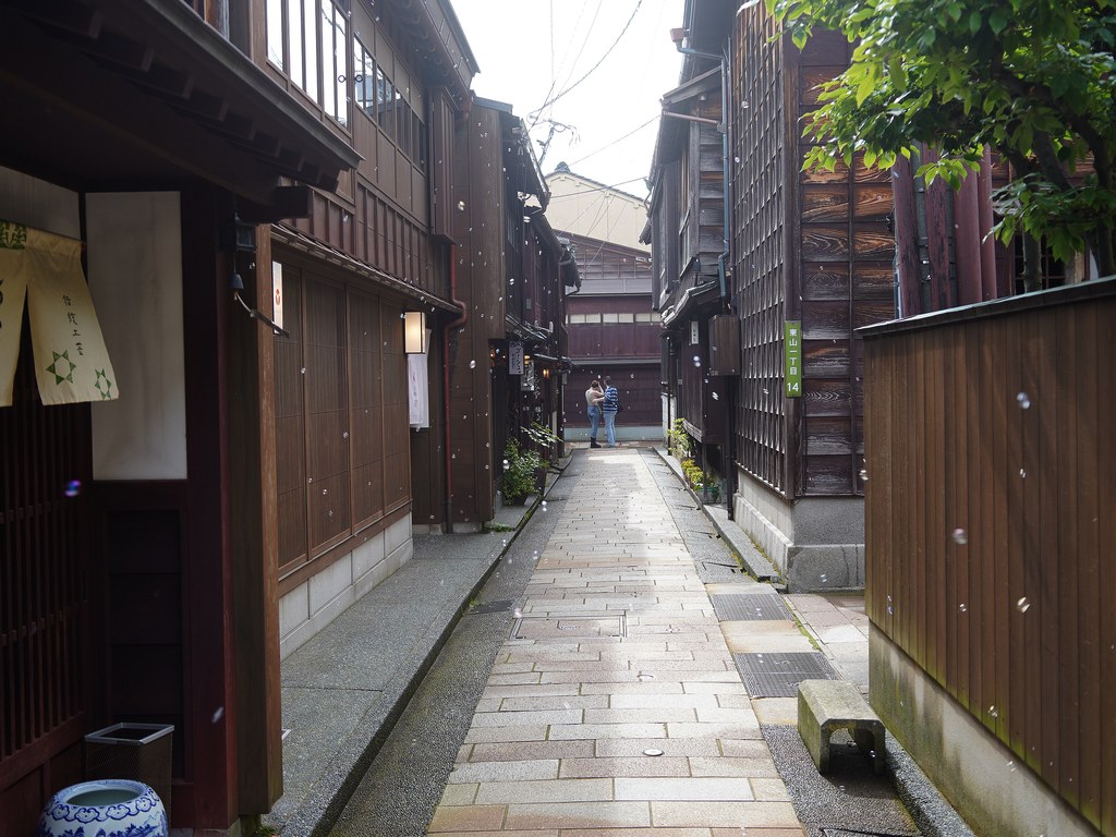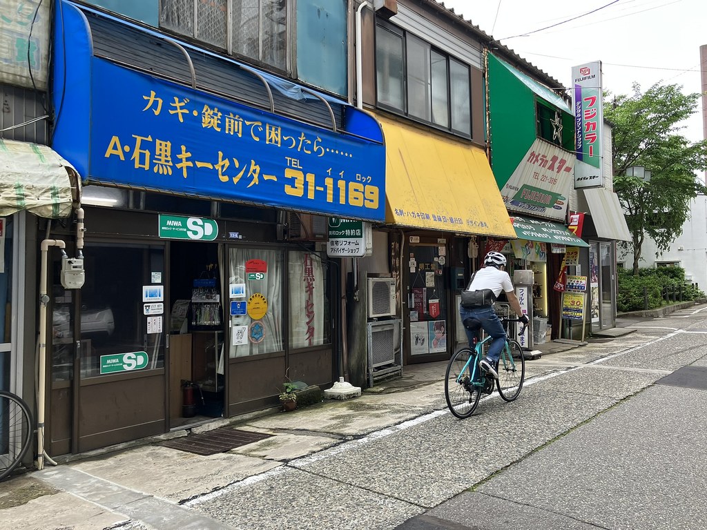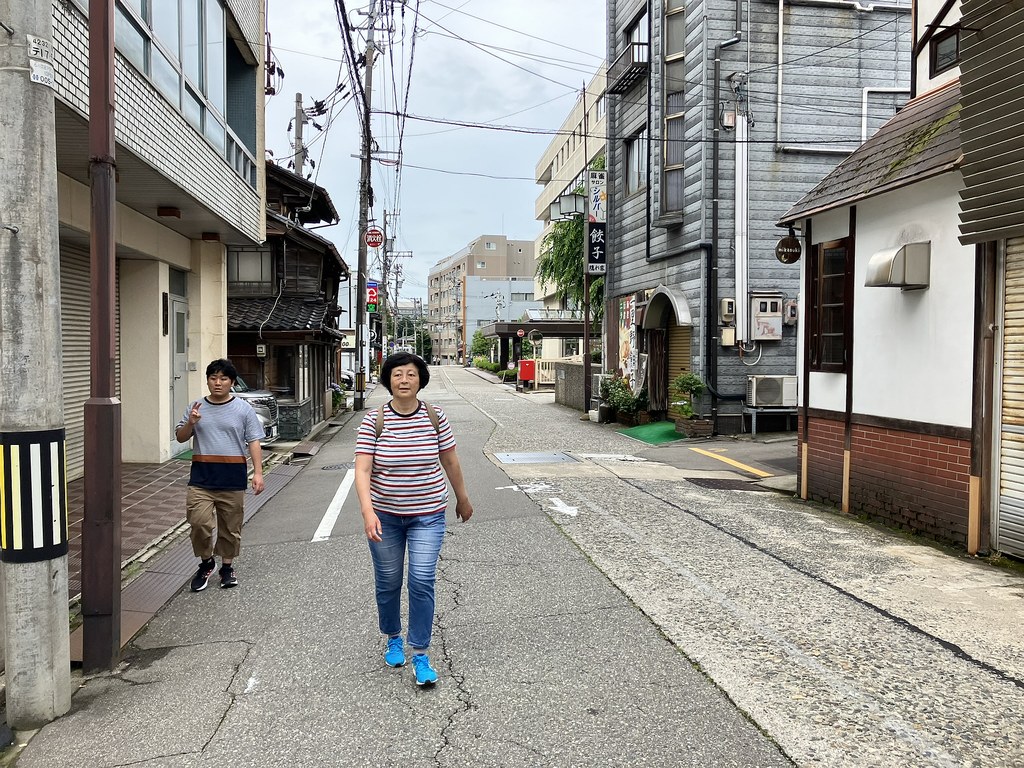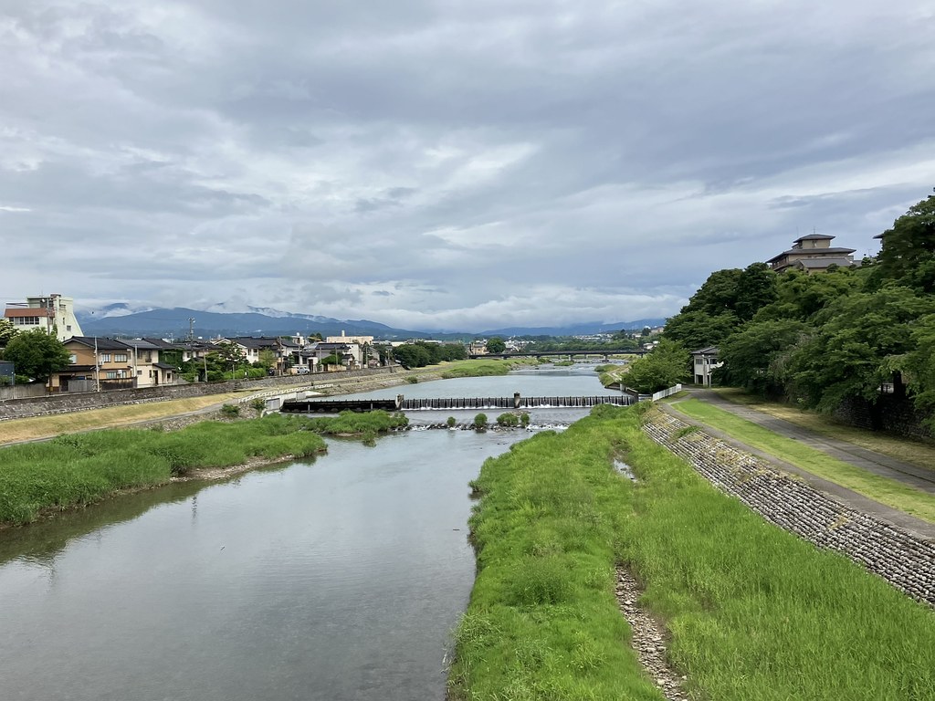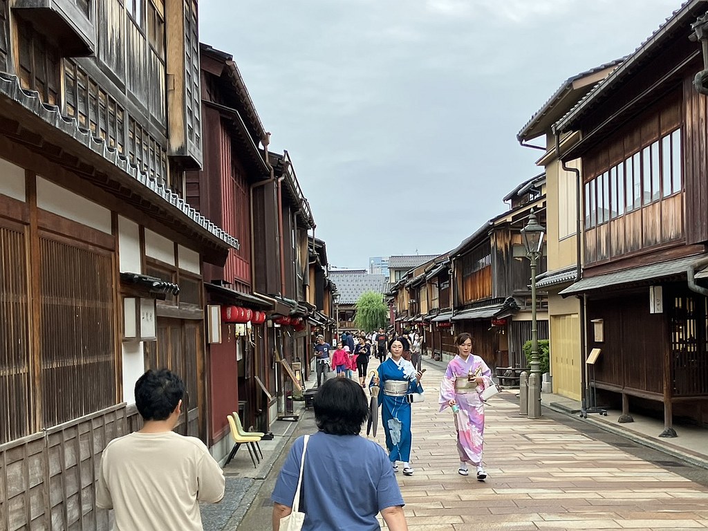 前回5月(5月28日)から2週後(6月11日)に再び金沢へ…パン屋のハシゴいつもの2軒目ジョアンで買い食いの昼食後、再び金沢市街をウォーキング、今回は金沢城公園を外しつつベタな観光スポットを「歩き易い」裏道で結んで巡ってみた。前回同様にアピタを起点で出発、にし茶屋街〜寺町は妙光寺・大円寺〜W坂こと石伐坂・桜橋〜新竪町〜北電・MROへ続く裏道〜旧県立図書館横から美術の小径で国立工芸館〜護国神社前から八坂を下り〜材木町の住宅街を抜け〜浅野川梅の橋〜ひがし茶屋街を小道で横断〜喧噪避けて宮田鈴庵の通りから小橋〜彦三から昔はアーケードだった横安江商店街〜エムザ裏スタジオ通り〜近江町市場十間町口から仙石通まで続く裏道〜北國新聞裏の鞍月用水東側の裏道〜眼鏡のMitoの階段から鞍月用水渡ってせせらぎ通り〜旧シネマ街〜新天地から犀川に続く片町の裏通り〜犀川縁から新橋渡って戻った。およそ10km、今回はなかなか満足できたルート取りだった。
