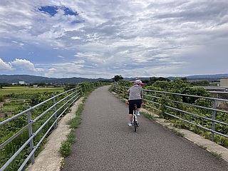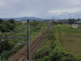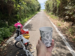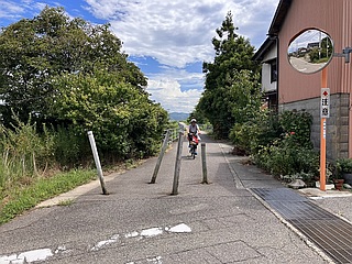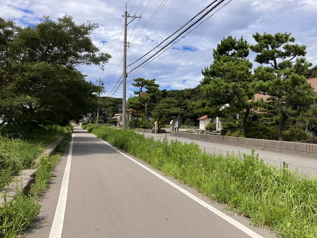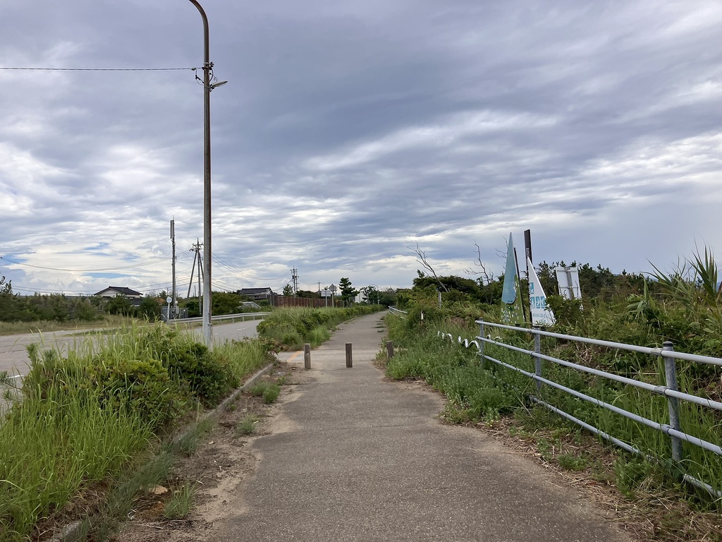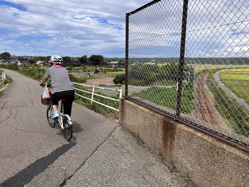 ▼北陸鉄道能登線跡へ 暑さ厳しい金沢市内でのジョグを断念、少しは涼しいだろう羽咋へ移動、家内に自転車で伴走してもらい12kmジョグ |