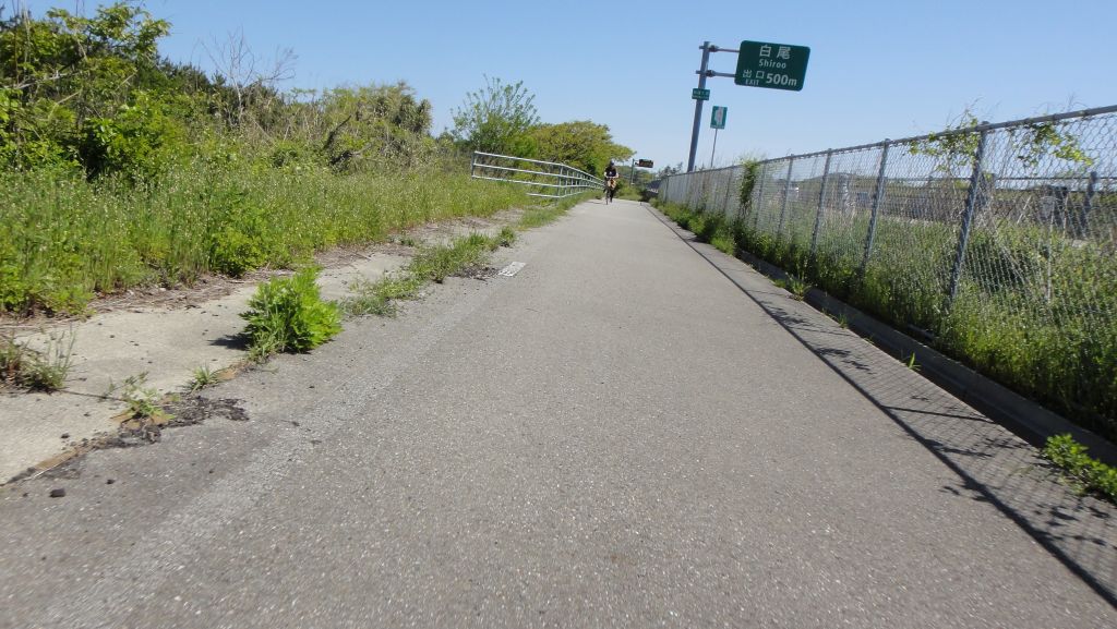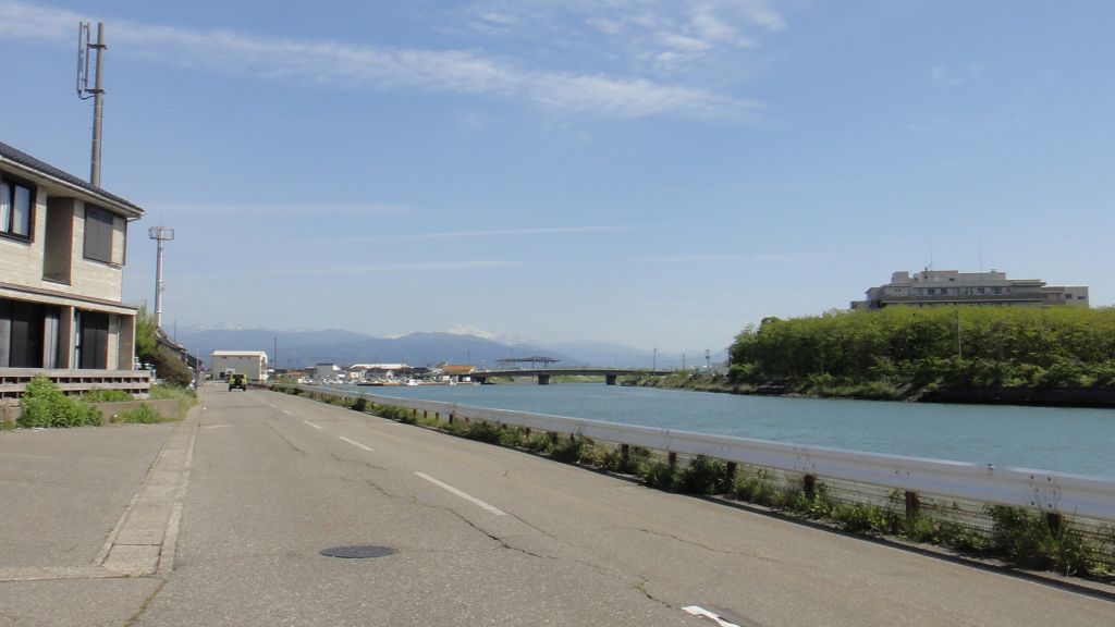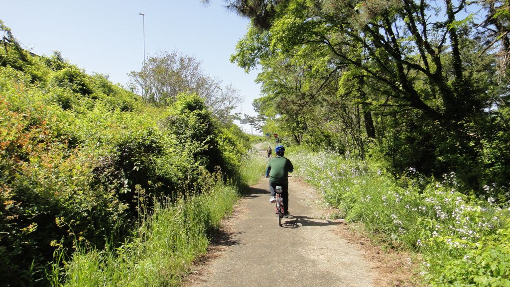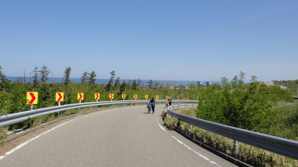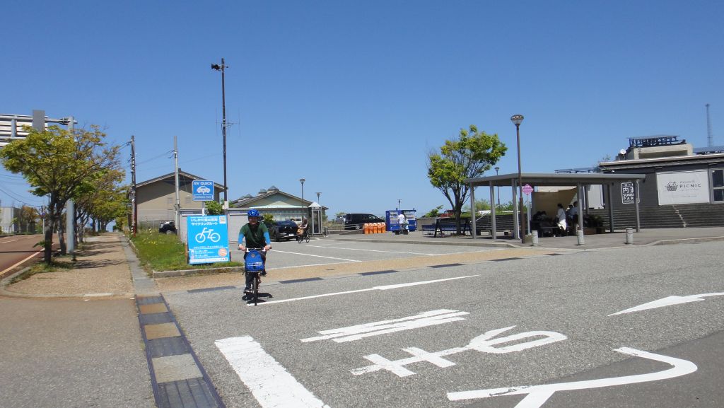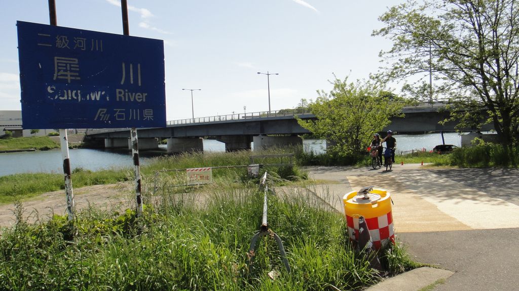 宇野気〜内灘〜金石〜金沢、往路は鉄道の準輪行ポタ 約42q 2024年5月5日 大型連休中に一度は県外に…で、昨年に続く家族ポタリング遠征。4時50分に起床、5時20分に妻子起こして5時43分出発。R8+R259でかほくへ、昨年と同じ宇野気駅駐輪場にDAHON3台降ろして駐輪、宇野気駅の列車発着音はハナミズキ。昨年とは逆方向に金沢へ移動。金沢市内に駐車し金沢駅へ。駅周辺はガルガンチュア音楽祭のせいか連休のせいか朝から人多し。金沢駅838のIR+JR西の七尾行きに乗車、休日だが意外と乗客ありもう少し遅かったら座れなかった。津幡で運転士がIRからJRWに交代。宇野気905着、今年は昨年の様に飛び乗りでなく切符を買えたので(自分は家内のSUICAを借りた)、東口での清算不要で西口から出られた。西口にもSUICAの端末(乗車と降車用が別々)があった。910宇野気駅西口出発、昨年同様の道で砂丘を上る…分かってるけど坂がきつい。今年も白尾灯台へ…写真撮ってる4人の若者の邪魔になったかもしれないが恵比寿神社で今日の安全祈願。金沢羽咋自転車道線K326を昨年とは逆方向に出発。気温高くなる予報だが向かい風気味の海風が気持ち良し。ハマダイコンの花が満開。これまた分かっていたけど連休だけに里山海道の交通量多く騒音がイヤになってくる。途中、西荒屋海水浴場へ向かう道に気付く…砂丘の反対側の小学校近くは正月の地震で液状化の被害が酷かったそう。およそ10kmで内灘ICに到着、K326の終点まで行かず河北潟排水路左岸の坂道を上がる。妻子は急坂に耐え切れず押し歩き。金沢医科大となりの道の駅内灘サンセットパークで1回目の休憩。タルトが名物だそうで食してみるがウーム…美味いとは言い難い。トイレも道の駅を名乗るにはこれまたウーム。サンセットブリッジ側の景色は良かった。 1040道の駅内灘発、内灘町役場裏から内灘林帯遊歩道の入口へ向かうも「自転車進入禁止」の立て看板。仕方なく廃墟の様な県営住宅横を進む。鶴が丘神社から林帯遊歩道に…こちらには自転車うんぬんの看板無く、早歩きほどの徐行速度で進む。ジョギングやバードウォッチングの人がいらして良い雰囲気。遊歩道終点を自分が勘違いして予定ルートから外れ内灘駅前に出てしまう。1110ラーメン藤が空いてみえたので昼食にと行ってみるが豚骨臭に妻子が微妙な反応で、当初予定の粟崎町のお多福を目指すことにする…1140到着、しかしまだ12時前なのに超絶混雑の40分待ちとのことで断念。昼食は延期として大野川側の道路を内灘へと戻る…斜めになった電柱が見えたと思ったら液状化で道路が凸凹、傾いて赤紙貼られた住宅も増えてくる。被害は西荒屋方面だけでなかった。それでも内灘の粟ヶ崎あたりは何故だか被害はほぼ無く、液状化の難しさまざまざ。 眺望の良い清湖大橋で大野川を渡り、浅野川を河口から左岸道路へ。風向きが追い風となり暑くなってくる。鞍降橋で右岸に移動、水の張られた田んぼを見ながら土手を遡る。ここまで来れば昼食はジョアンでも良いかと…いつもと代り映えせんなw 海側環状の橋を潜り、北寺大橋を渡って、北鉄三ツ屋駅を自転車転がして突っ切る。1215ジョアン到着、相変わらずの人気店で客多し、定番クレセントは売り切れだったが焼き上がりまで12分とのことで、外のテーブルで他のパンを頂きつつクレセントを待つ。おかげでそこそこゆっくり休めた。焼き立てで熱々のクレセントは抜群に美味い(この日唯一美味かった食べ物だった)。スズメにも少し御裾分け。 1240過ぎに出発、海側環状沿いの西部緑道を進む。東京インテリア前の環状鞍月交差点を地下歩道で潜り金沢港へ。金沢港には海保の船のみでクルーズ船はおらず。クルーズターミナルでもガルガンチュア音楽祭、ちと五月蠅かった。大野から金石へ古い町並みを進み…1345頃、めん房なかもとなる古い店構えの食堂発見、「お腹は減ってはいないけど和風で塩気のあるものを口に入れたい」との家内の意見に賛同即入店…しかし、駐車場で捨てられてたガムを踏み、店内でオーダー後にタバコの煙、おまけに出てきたざるそばは所謂専門店では自分史上ワースト2番目…小麦粉ばかりの麺に業務用濃縮タイプのツユ、がっくり。 1420頃、犀川河口から金石港、らくだらくだの金石温泉が懐かしい。犀川渡って健民海浜公園へ。4年前のポタリングスタート地点と繋ぐ、これで妻子は志賀町〜あわら市の海岸線を自転車で制覇、自分は石川県の全海岸沿い制覇のはず。犀川右岸に戻り、勝手知ったる河川敷の自歩道を川上へ。観音堂の石川テレビ鉄塔、対岸のいしかわ総合スポーツセンターや西部緑地公園、ラブホテルの自由の女神etcと眺めつつ、人道橋の新御影橋手前で河川敷から出て金沢市街に戻りポタリング終了。自転車をシャトルに車載収納、ローザンヌで食パン引き取り、双葉湯で汗を流し、zuiunで夕食の弁当テイクアウトして無事帰宅。食べ物には恵まれずwコースもほぼ知った景色ばかりであったが、今年も家族で準輪