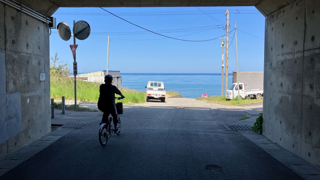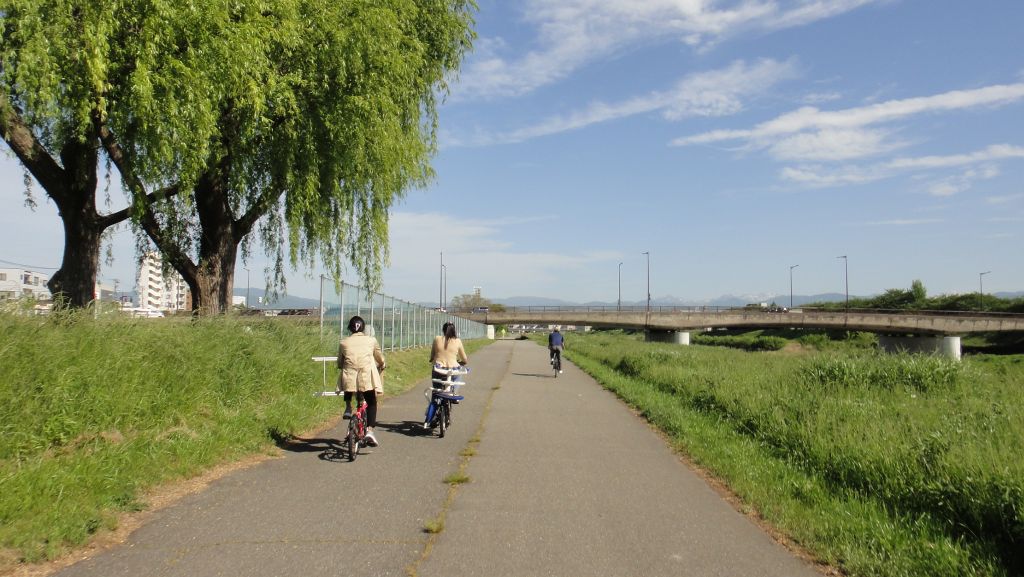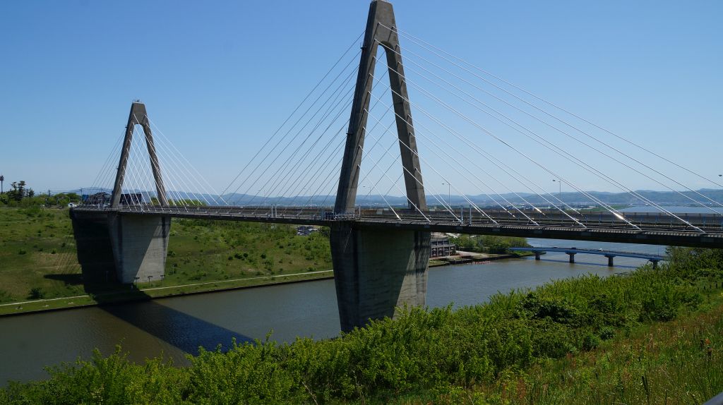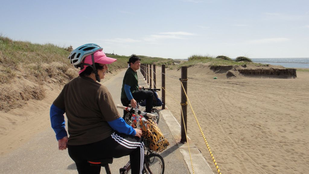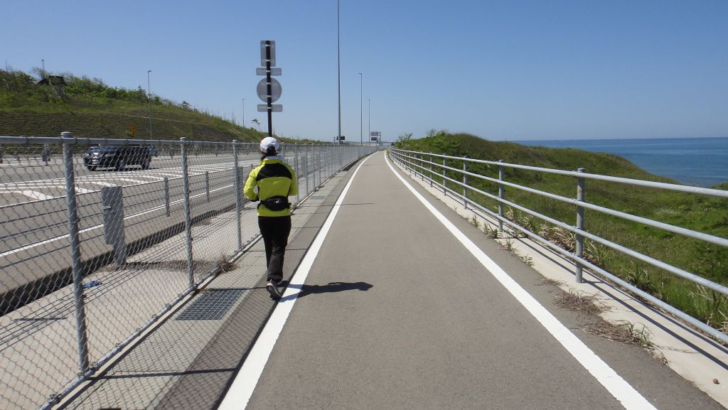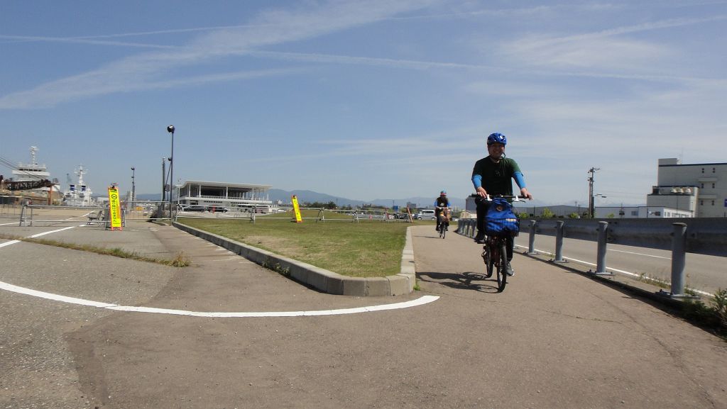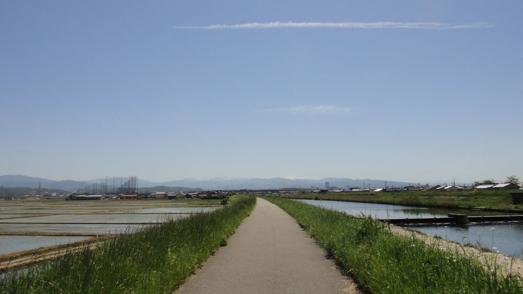 宇野気〜内灘〜金石〜金沢、往路は鉄道の準輪行ポタ 約42q 2024年5月5日 大型連休中に一度は県外に…で、昨年に続く家族ポタリング遠征。4時50分に起床、5時20分に妻子起こして5時43分出発。R8+R259でかほくへ、昨年と同じ宇野気駅駐輪場にDAHON3台降ろして駐輪、宇野気駅の列車発着音はハナミズキ。昨年とは逆方向に金沢へ移動。金沢市内に駐車し金沢駅へ。駅周辺はガルガンチュア音楽祭のせいか連休のせいか朝から人多し。金沢駅838のIR+JR西の七尾行きに乗車、休日だが意外と乗客ありもう少し遅かったら座れなかった。津幡で運転士がIRからJRWに交代。宇野気905着、今年は昨年の様に飛び乗りでなく切符を買えたので(自分は家内のSUICAを借りた)、東口での清算不要で西口から出られた。西口にもSUICAの端末(乗車と降車用が別々)があった。910宇野気駅西口出発、昨年同様の道で砂丘を上る…分かってるけど坂がきつい。今年も白尾灯台へ…写真撮ってる4人の若者の邪魔になったかもしれないが恵比寿神社で今日の安全祈願。金沢羽咋自転車道線K326を昨年とは逆方向に出発。気温高くなる予報だが向かい風気味の海風が気持ち良し。ハマダイコンの花が満開。これまた分かっていたけど連休だけに里山海道の交通量多く騒音がイヤになってくる。途中、西荒屋海水浴場へ向かう道に気付く…砂丘の反対側の小学校近くは正月の地震で液状化の被害が酷かったそう。およそ10kmで内灘ICに到着、K326の終点まで行かず河北潟排水路左岸の坂道を上がる。妻子は急坂に耐え切れず押し歩き。金沢医科大となりの道の駅内灘サンセットパークで1回目の休憩。タルトが名物だそうで食してみるがウーム…美味いとは言い難い。トイレも道の駅を名乗るにはこれまたウーム。サンセットブリッジ側の景色は良かった。 1040道の駅内灘発、内灘町役場裏から内灘林帯遊歩道の入口へ向かうも「自転車進入禁止」の立て看板。仕方なく廃墟の様な県営住宅横を進む。鶴が丘神社から林帯遊歩道に…こちらには自転車うんぬんの看板無く、早歩きほどの徐行速度で進む。ジョギングやバードウォッチングの人がいらして良い雰囲気。遊歩道終点を自分が勘違いして予定ルートから外れ内灘駅前に出てしまう。1110ラーメン藤が空いてみえたので昼食にと行ってみるが豚骨臭に妻子が微妙な反応で、当初予定の粟崎町のお多福を目指すことにする…1140到着、しかしまだ12時前なのに超絶混雑の40分待ちとのことで断念。昼食は延期として大野川側の道路を内灘へと戻る…斜めになった電柱が見えたと思ったら液状化で道路が凸凹、傾いて赤紙貼られた住宅も増えてくる。被害は西荒屋方面だけでなかった。それでも内灘の粟ヶ崎あたりは何故だか被害はほぼ無く、液状化の難しさまざまざ。 眺望の良い清湖大橋で大野川を渡り、浅野川を河口から左岸道路へ。風向きが追い風となり暑くなってくる。鞍降橋で右岸に移動、水の張られた田んぼを見ながら土手を遡る。ここまで来れば昼食はジョアンでも良いかと…いつもと代り映えせんなw 海側環状の橋を潜り、北寺大橋を渡って、北鉄三ツ屋駅を自転車転がして突っ切る。1215ジョアン到着、相変わらずの人気店で客多し、定番クレセントは売り切れだったが焼き上がりまで12分とのことで、外のテーブルで他のパンを頂きつつクレセントを待つ。おかげでそこそこゆっくり休めた。焼き立てで熱々のクレセントは抜群に美味い(この日唯一美味かった食べ物だった)。スズメにも少し御裾分け。 1240過ぎに出発、海側環状沿いの西部緑道を進む。東京インテリア前の環状鞍月交差点を地下歩道で潜り金沢港へ。金沢港には海保の船のみでクルーズ船はおらず。クルーズターミナルでもガルガンチュア音楽祭、ちと五月蠅かった。大野から金石へ古い町並みを進み…1345頃、めん房なかもとなる古い店構えの食堂発見、「お腹は減ってはいないけど和風で塩気のあるものを口に入れたい」との家内の意見に賛同即入店…しかし、駐車場で捨てられてたガムを踏み、店内でオーダー後にタバコの煙、おまけに出てきたざるそばは所謂専門店では自分史上ワースト2番目…小麦粉ばかりの麺に業務用濃縮タイプのツユ、がっくり。 1420頃、犀川河口から金石港、らくだらくだの金石温泉が懐かしい。犀川渡って健民海浜公園へ。4年前のポタリングスタート地点と繋ぐ、これで妻子は志賀町〜あわら市の海岸線を自転車で制覇、自分は石川県の全海岸沿い制覇のはず。犀川右岸に戻り、勝手知ったる河川敷の自歩道を川上へ。観音堂の石川テレビ鉄塔、対岸のいしかわ総合スポーツセンターや西部緑地公園、ラブホテルの自由の女神etcと眺めつつ、人道橋の新御影橋手前で河川敷から出て金沢市街に戻りポタリング終了。自転車をシャトルに車載収納、ローザンヌで食パン引き取り、双葉湯で汗を流し、zuiunで夕食の弁当テイクアウトして無事帰宅。食べ物には恵まれずwコースもほぼ知った景色ばかりであったが、今年も家族で準輪