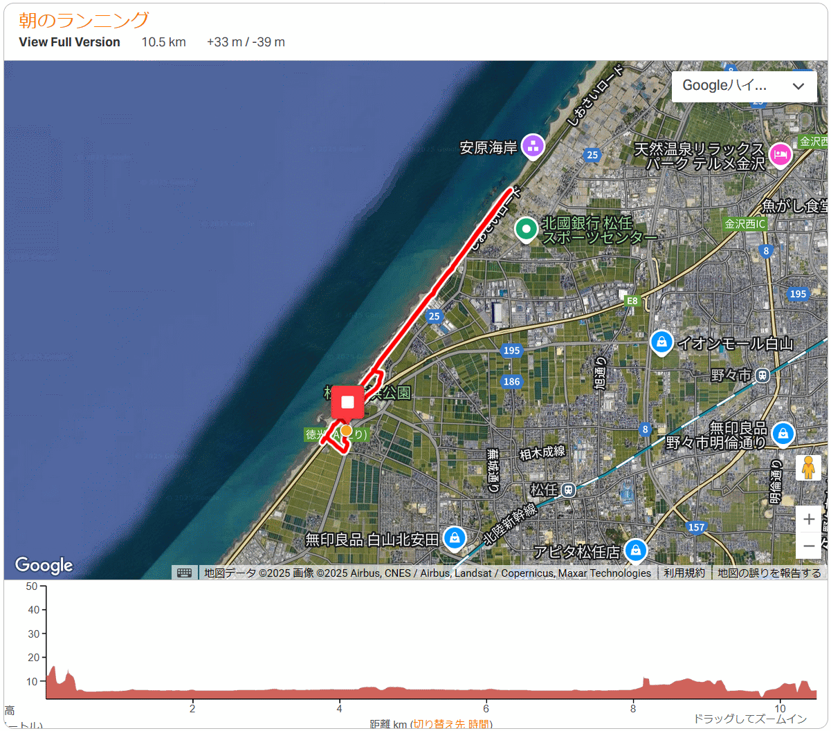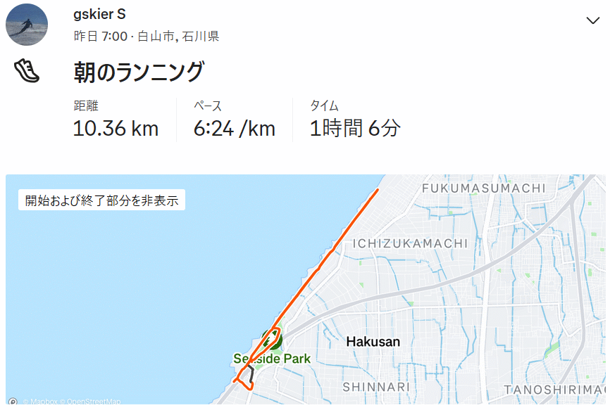 徳光海岸〜松任海浜公園 10km 2025年6月28日 CIフェアの朝の買物行列に並ぶため(笑)、徳光PAで前夜車中泊…3日前に新潟出雲崎で車中泊してたので準備はほぼ不要だった。すぐ傍の旧松任CCZ温泉こと「おつかりさま」が朝5時から営業と知り、であれば朝ラン&朝風呂可能だなと、5年前走った加賀海浜自転車道の一部を使って10キロほどジョグ。7時頃にスタート、徳光PAの高速道を跨ぐ橋(ラブリッジまっとう)で海岸へ。ハマナス自生の竹松海岸あたりまで北上し折り返す。ランナー何人かとすれ違った。単純往復は避けるべく野本川あたりから松任海浜公園に入り初訪、パークゴルフ場主体であるが意外と立派な公園だった。先週の第17回富山湾岸UMからちょうど一週間、ダメージまだ残ってる様で腰痛発生これはちょっとマズイ。走後は温泉に入浴、子どもが未就学児だった頃だからおよそ四半世紀ぶりで何だか懐かしかった。 |