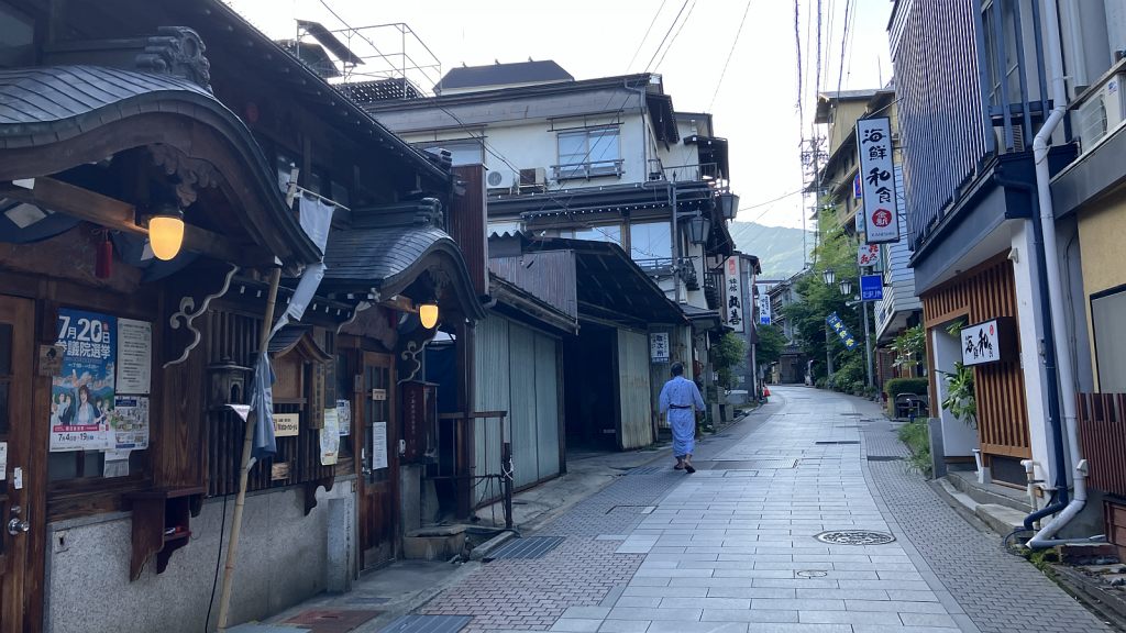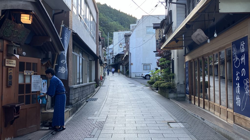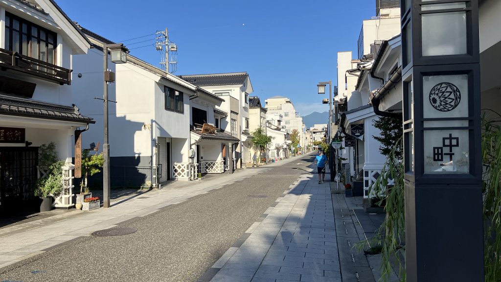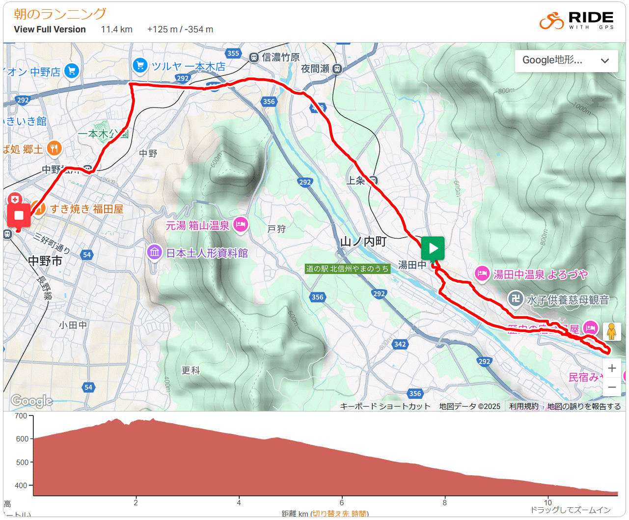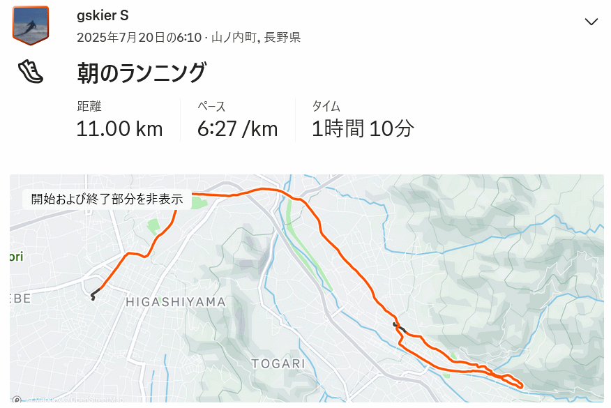 湯田中渋温泉郷→信州中野駅ジョグ 11km 2025年 7月20日 海の日連休恒例の旅行では4年ぶりの朝ジョグ、信州中野にスキーシーズンと長野マラソン以外で泊まるのは初めて、折角なのでどこか走るべく地図と睨めっこ、ホテルは長電中野駅の真ん前であり、湯田中まで電車に乗り温泉街を巡ってホテルまで下るコースに決定。妻子と信州中野発553に乗車の長野電鉄に乗り湯田中へ、車中からは果実畑と北信五岳に高社山、608に湯田中着も「美わしの志賀高原」が掛からない。聞けば到着時に鳴らすのは9時以降で楓の湯の職員がやってらっしゃるそう。妻子は駅周辺散策して646の長電で中野に戻ることとし、自分はジョグで渋温泉まで上ってから中野のホテルまで戻った。平和観音通りを東進、斜度結構きつくてかなりゆっくり、東小学校と平和観音の間はかつて湯田中ロープウェイの駅舎があったはず。ごりん高原スキー場が廃止されたのは2007年。庚申塔のT字路から右へ急坂下ると渋温泉のメインストリートに入る。石畳の古い街並みは本当に渋い。朝から浴衣姿で外湯巡りしてる方々が羨ましい。外観が見事な金具屋前は写真撮る人多数。温泉寺でもう一本南の通りへ折り返す。こちらも外湯が並ぶも狭いので独特の情緒。道なりで二番湯近くのメインストリートに戻り西進し、渋温泉から安代温泉へ。あおき書店で左折し横湯川沿いの道路へ、北信五岳がスカッと見えて爽やか。星川橋で横湯川と角間川が合流し夜間瀬川に、K342は五輪道路ができる迄は志賀高原へのアプローチ道路だったなー。対岸は穂波温泉の今は無き湯香里荘はどうなってるか? 右手の星川温泉は星川館と水明館(伊東園ホテルに)に泊まったことも…。 自動車が増えてくるだろうK342と別れて、再びの湯田中温泉駅前から旧道(恐らく草津街道)のK478へ。K478は3つの踏切で長野電鉄ともつれる様に下っていく。ここから視界の主役は高社山、木島平改めロマンスの神様スキー場も見える。三水屋?モータースの店内に懐かしい板、紛れもなく五十数年前に兄の御下がりで使ったカザマの学童スキー、思わず「おぉーー」と声が出た。町役場近くに今や町長となったアルペン五輪選手の平沢岳さんの看板。果物畑を抜け夜間瀬の古い集落から街道を離れてR403へ。夜間瀬川を渡ると山ノ内町とお別れして中野市。 緩い左カーブから視界が開けて北アルプスを眺められる様に、槍ヶ岳がはっきり分かる、右端はホームゲレンデのシンボル五竜岳。あまり人が通ってないのか雑草とクモの巣だらけの長電アンダーパスを抜けてオリンピック道路R403へ入りお馴染みの景色に。中野市営野球場を左手に見つつ、ツルヤとDCMの一本木交差点で左折し中野市街へ。気温が上がり日射も辛くなってきたが残りは2キロ強。中野松川駅の踏切で右折、駅前への通りに左折、シンボリックな一楽食堂が見えて中野駅前に到着。北海道で走って以来の10日ぶりのジョグは下りばかりで脚筋に結構負荷掛かったが気持ち良かった。渋温泉にはいつか泊まりに行きたいと思いつつ、ルートインの延徳温泉(一応は天然温泉らしい)で汗を流した。朝ジョグには部屋のシャワーよりも大浴場の方が色々助かる。 |