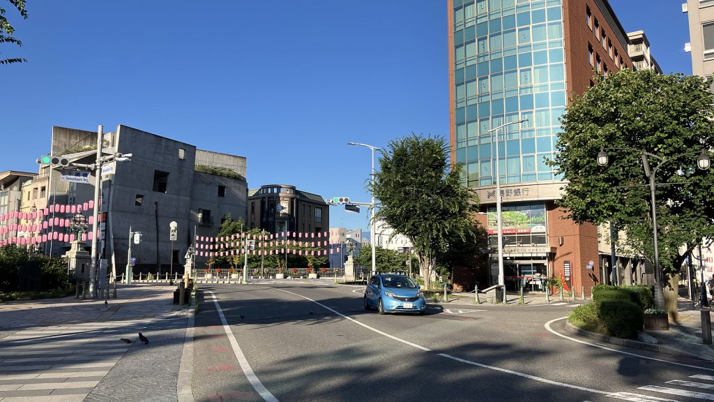 ▼翌日朝の松本市街散歩 約3km この日は松本駅前に宿泊、夏に松本市で泊まるのは久しぶり…で、翌朝の松本市街散歩で撮った写真も掲載。松本の街中を走ったのは早や15年も前にて街の変化は大きい。当時カタクラモールだったジャスコは巨大なイオンモール松本となり、かつての常宿は更地になってそのイオンモール用駐車場となり、イオンモールと共存可能ではと言われたパルコも井上百貨店も力尽きて閉店してしまった。 |