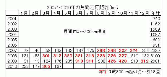 (2)本格的に走り始めた2007年8月からの月間走行距離