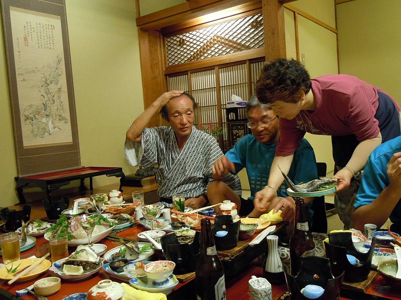 ゆうなぎさん1階の宴会場で懇親会。魚介類は凄まじいボリュームでこれ8人前?と思える刺身が4人前だったり、もう終わりだろうと思えば焼き魚登場と、食べても食べてもこれでもかと出てくる大サービスであった。参加者は50km100kmを走り切った充足感と達成感でそれぞれ話が尽きず、、、自分は寝不足と疲労と酔いで途中で気絶してしまった。自分を除く全員がサッカーワールドカップ日本vsオランダ戦をテレビ観戦しつつ、さらに盛り上がった様である。翌日の朝食後、自家用車組と別れ、路線バスで氷見駅へ。からくり時計観覧などで氷見市街を散策(自分は駅の待合室で缶ビール飲みつつ朝寝)。JRにて高岡さらに富山へと移動しつつ少しずつ解散、笑顔で別れた。来年はどうしましょうか?
