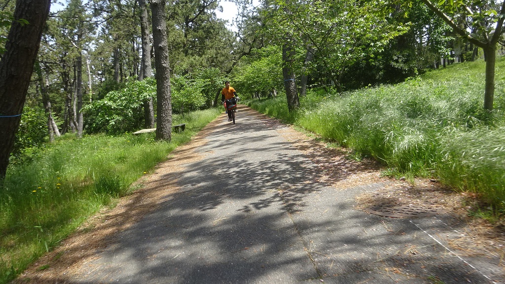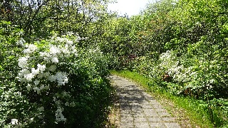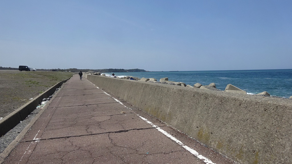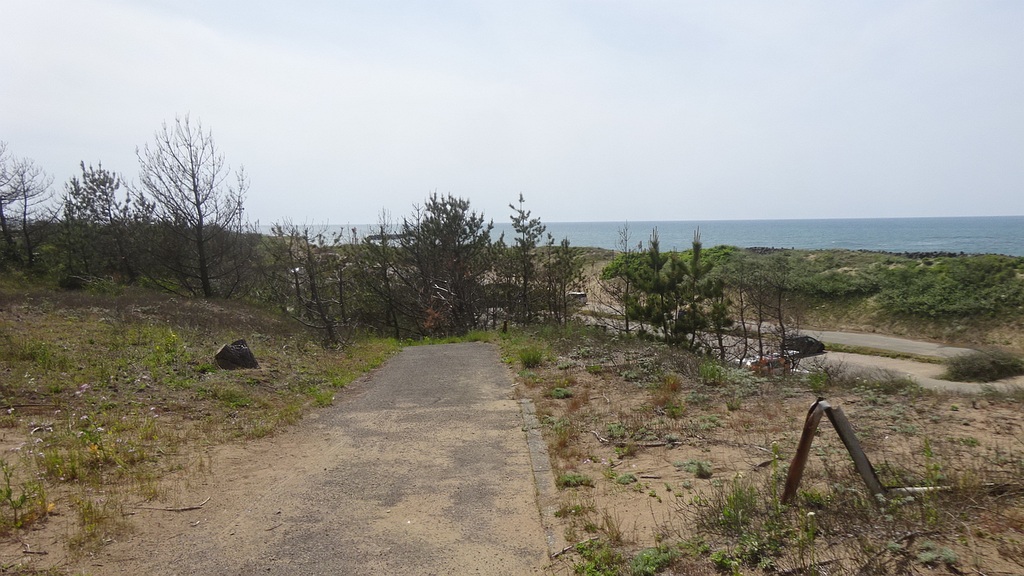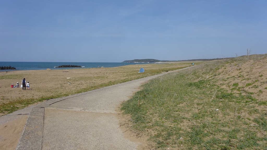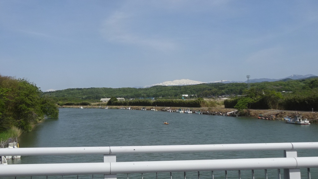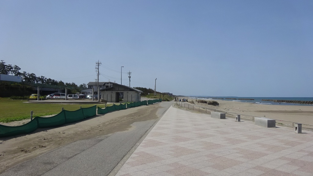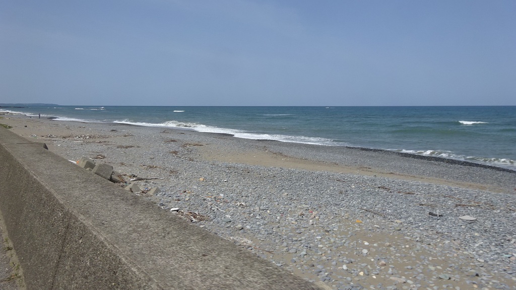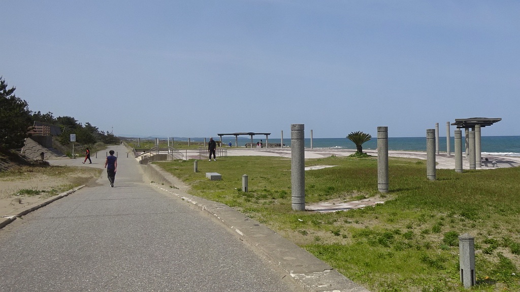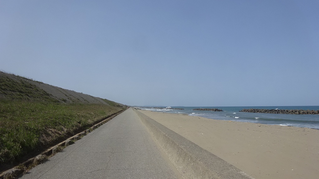 美川大橋を渡り北陸道を潜って海岸の自転車道へ。昨年も感じたが無理矢理に自転車道と名付けてる感の路面、割れ目の凸凹が少々不快。風は残念ながら南西の向かい風、強くならないことを祈る。道も景色も単調だが、海水浴場、コアジサシ、ハマナスの花等、時々の刺激に救われつつ安宅海浜公園で最初の休憩、梯川を渡り安宅の関、一旦一般道に出てサイクリングロードを辿れば防風防砂林の中、向かい風が無くなるのは救いで潮騒を聞きながらのライドは気持ち良し。高速道路の車の音が大きくなり、林を抜け動物管理センターに突き当たると再び海岸沿いへ。路面はコンクリートになり走り易い。ダイシャクシギ?と思われるクチバシの曲がった大きな鳥の群れ。離岸堤の無い渚になると尼御前岬が近づいた実感。片山津IC付近から白山が大きい。一般道に戻って新堀川を渡り海岸に戻ると今日最も悪い路面、波飛沫を被りつつ我慢我慢、海岸沿いの道が終わり北陸道横を上れば尼御前SA下り裏手、ここで昼食大休憩。